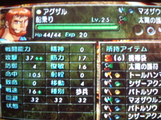 太陽の護符は命中+17という凄いものなので、迷わずアグザルに装備させます。